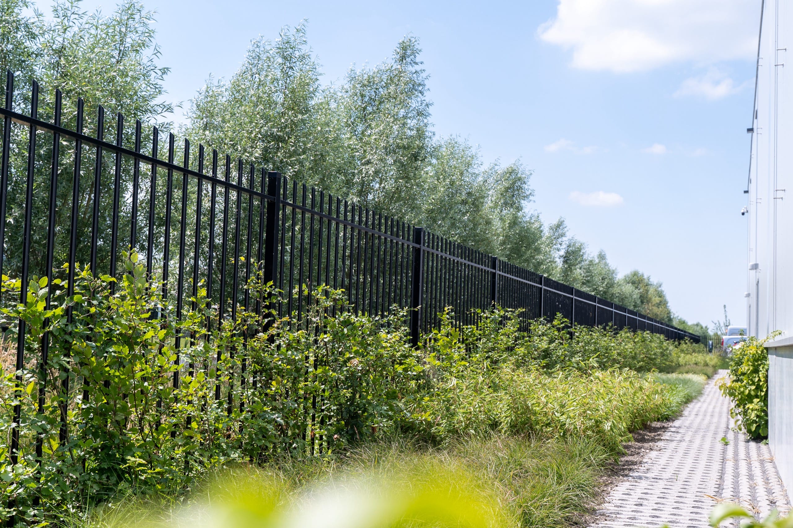 Voor de terreinbeveiliging rondom het pand schakelde bouwpartner Hercuton de hulp in van B&G Hekwerk. Het terrein is voorzien van 350 meter Rondissade spijlenhekwerk, uitgevoerd in stijlvol zwart (RAL 9005) en op een hoogte van 2 meter. Rondissade is een elegant en stevig hekwerk met ronde spijlen, ideaal voor een representatieve uitstraling.