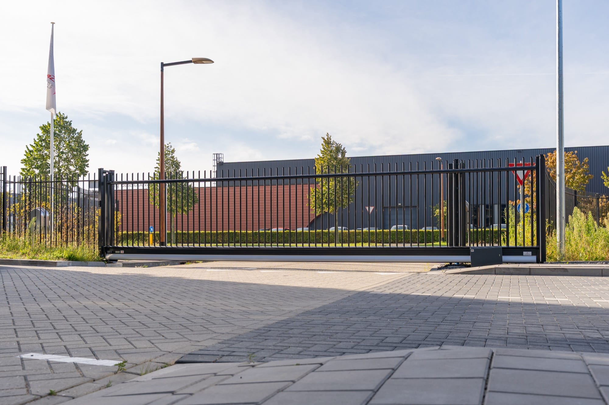 Voor de voertuigtoegangen zijn drie elektrisch aangedreven Eco-Liner schuifpoorten geplaatst, met doorgangen van 6, 7 en 8 meter breed. Deze zijn voorzien van fotocellen en GSM-bediening voor een veilige en gecontroleerde toegang.