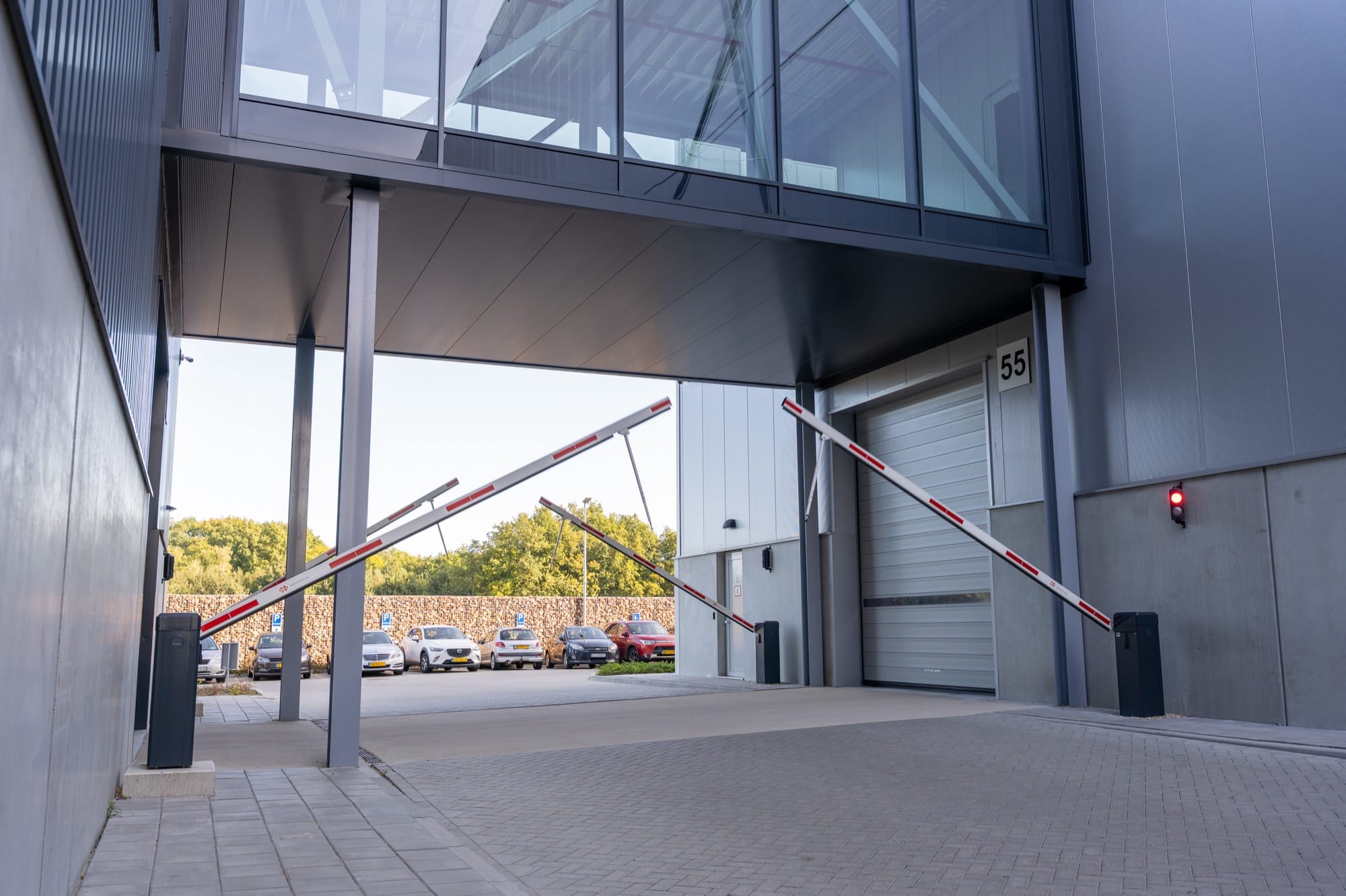 Het terrein is uitgerust met acht slagbomen voor personenauto’s en vrachtwagens. Vier hiervan vormen een sluisopstelling die zorgt voor een veilige en gecontroleerde verbinding tussen de twee hallen. Zo wordt het verkeer op het terrein overzichtelijk en efficiënt geregeld, ook tijdens piekmomenten.