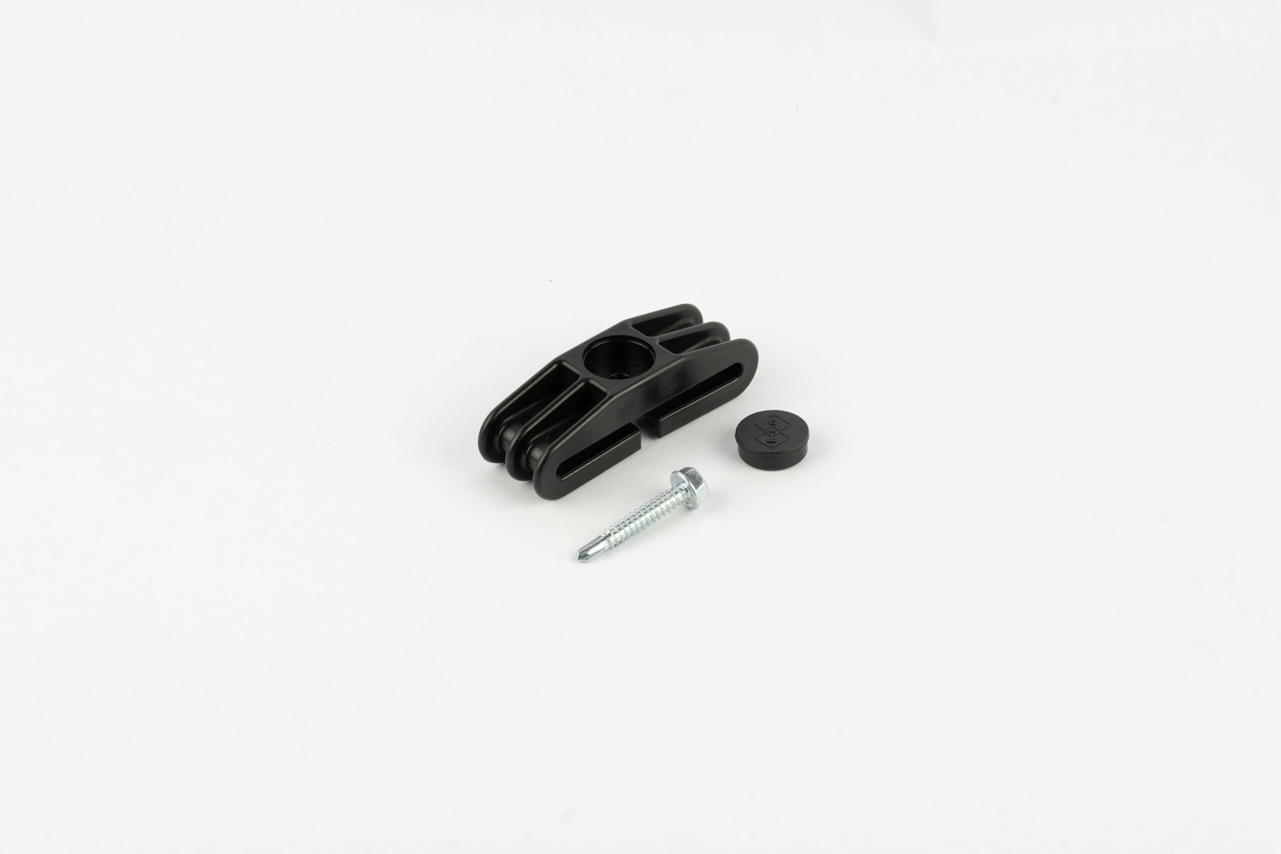 Dubbele kunststof draadmat klem met afdekdopje en zeskantschroef